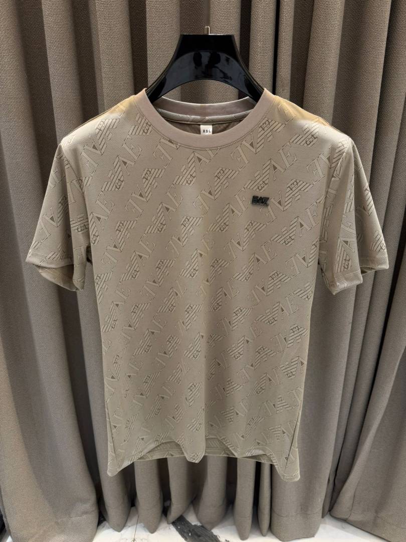 • Emporio Arman_i Chest Logo Imported Round Neck T-shirt Beige