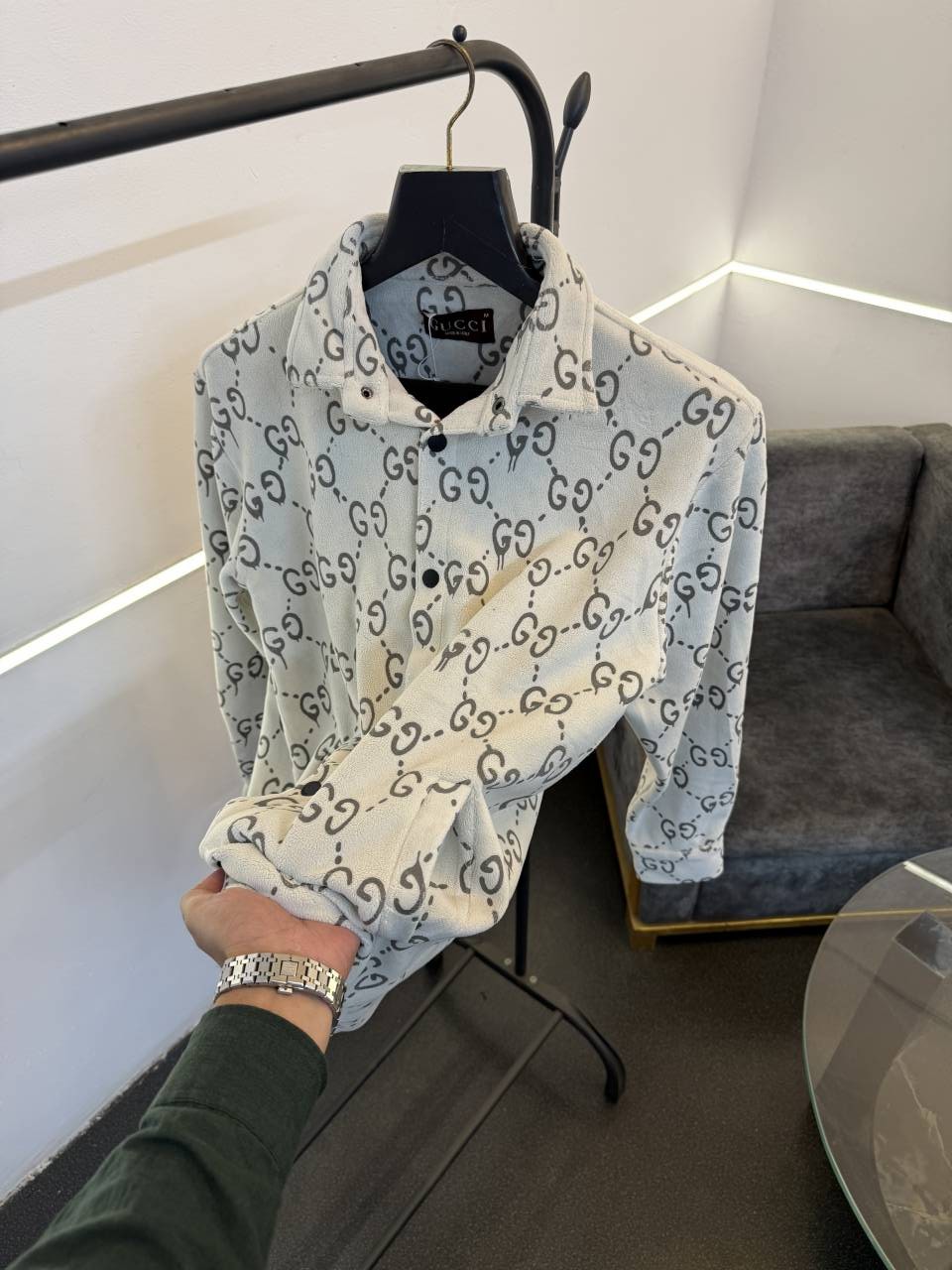 ? *Gucci imported fabric soft feel inside out shacket with GG monogram with front one and brand buttons as per store now in stock*?