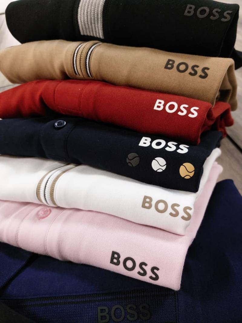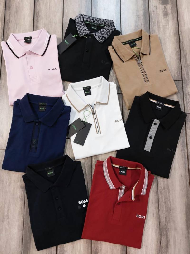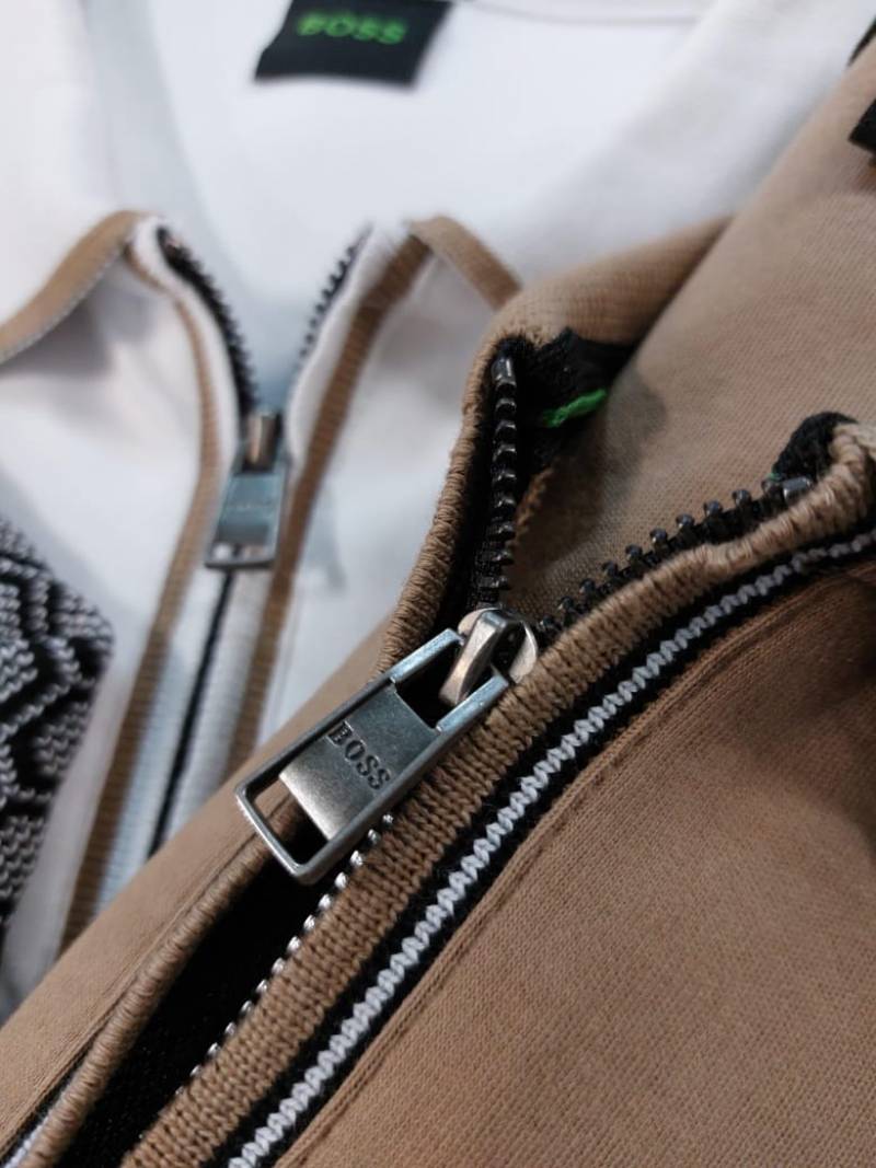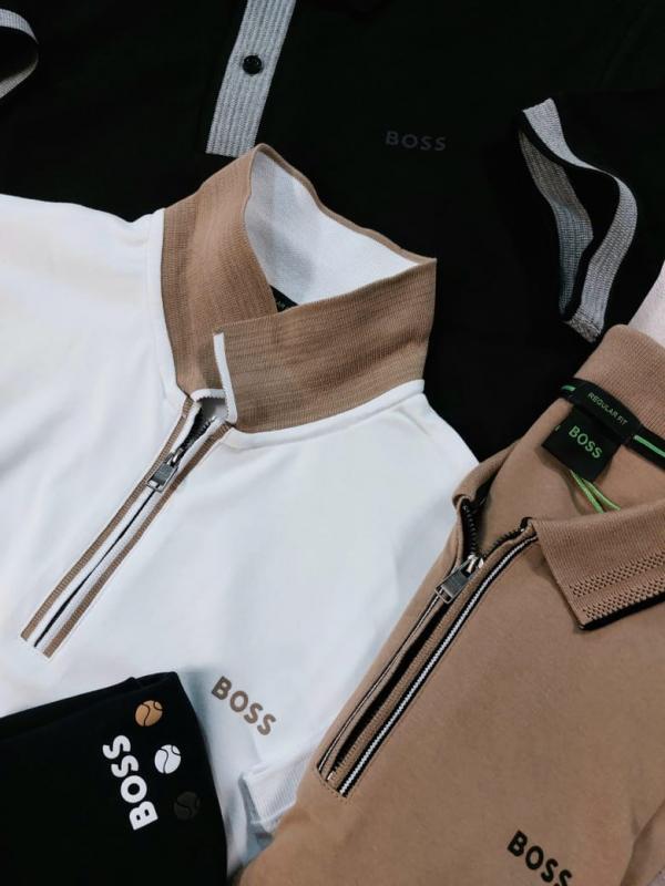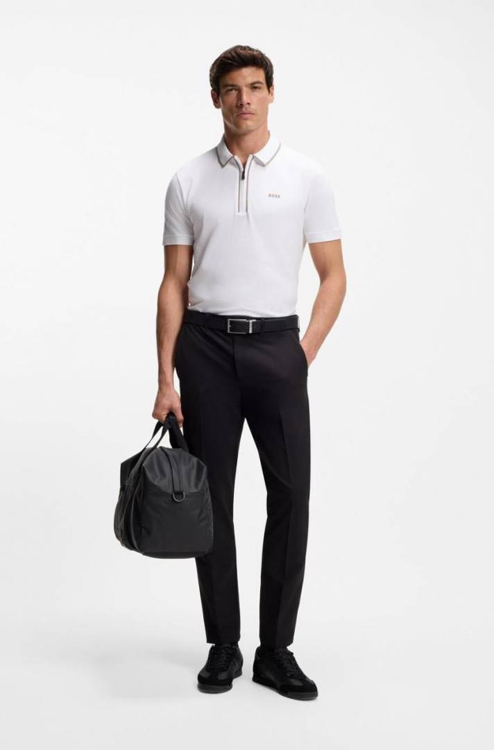 Hugo Bos s White Premium 240 gsm interlock compact cotton fabric Polo Tshirt with Collar Design and Emboss Logo Zip Style 3364