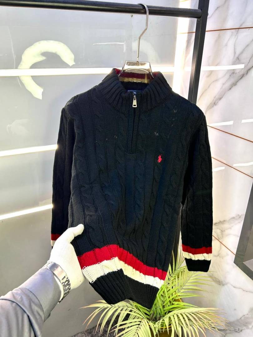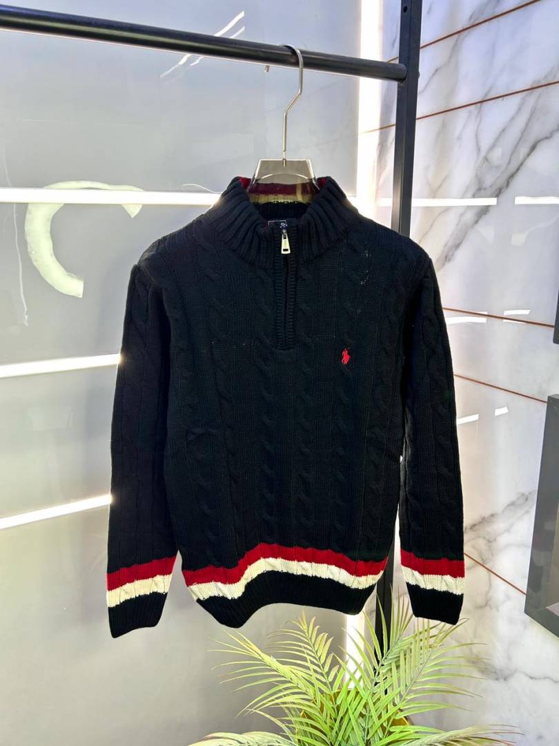 Ralph_Lauren Black Imported knitted Super Premium High Neck Pullovers F3264-BL